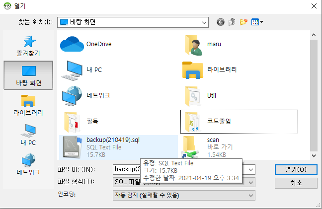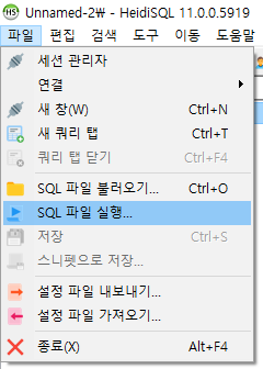 파일>SQL 파일 불러오기 > 불러올 파일 선택