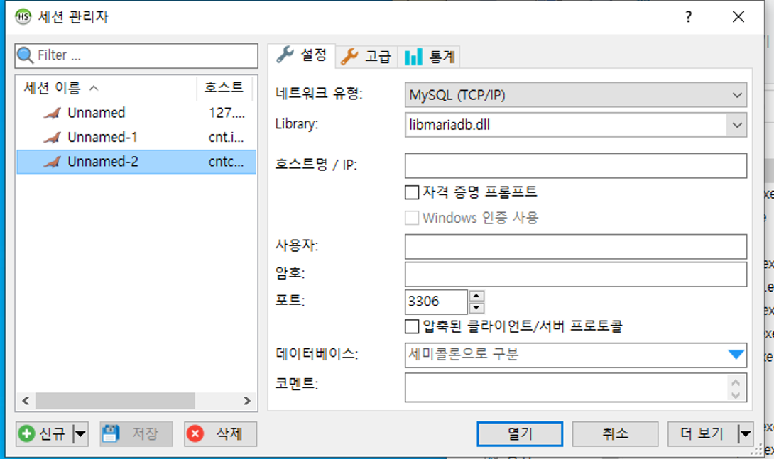 작성자는 현재 기존 서버에서 다른 서버로 데이터를 이관시켜야 하므로 해당 서버로 HeidiSQL 접속